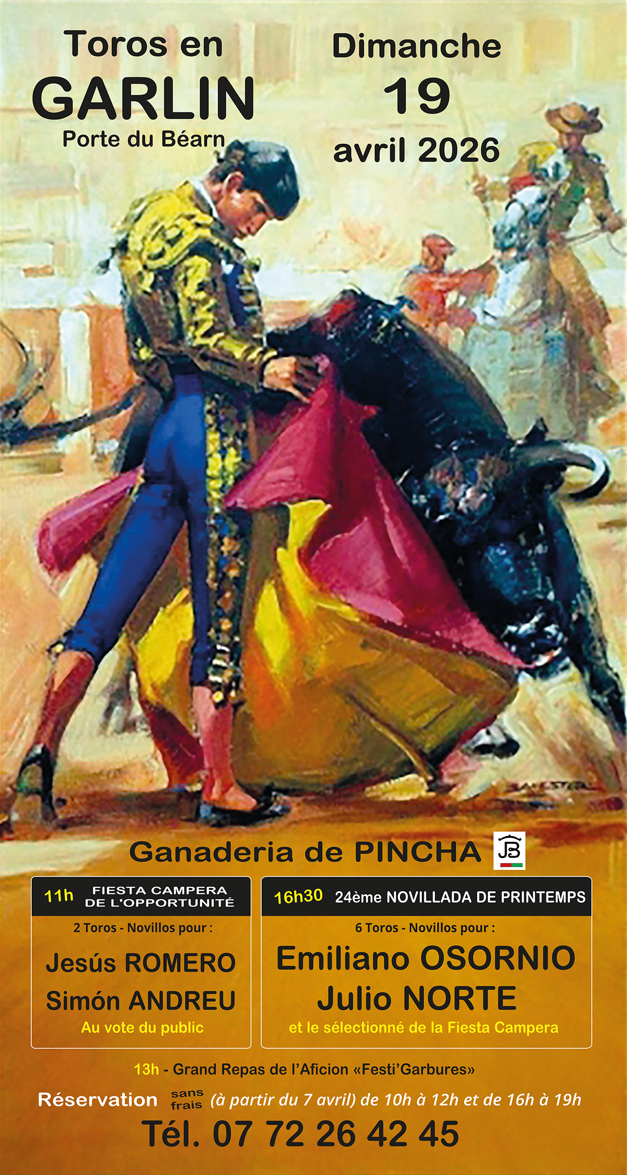 Garlin dévoile l’affiche de la 24ᵉ Novillada de Printemps : la ganadería Pincha et une jeunesse prometteuse à l’honneur